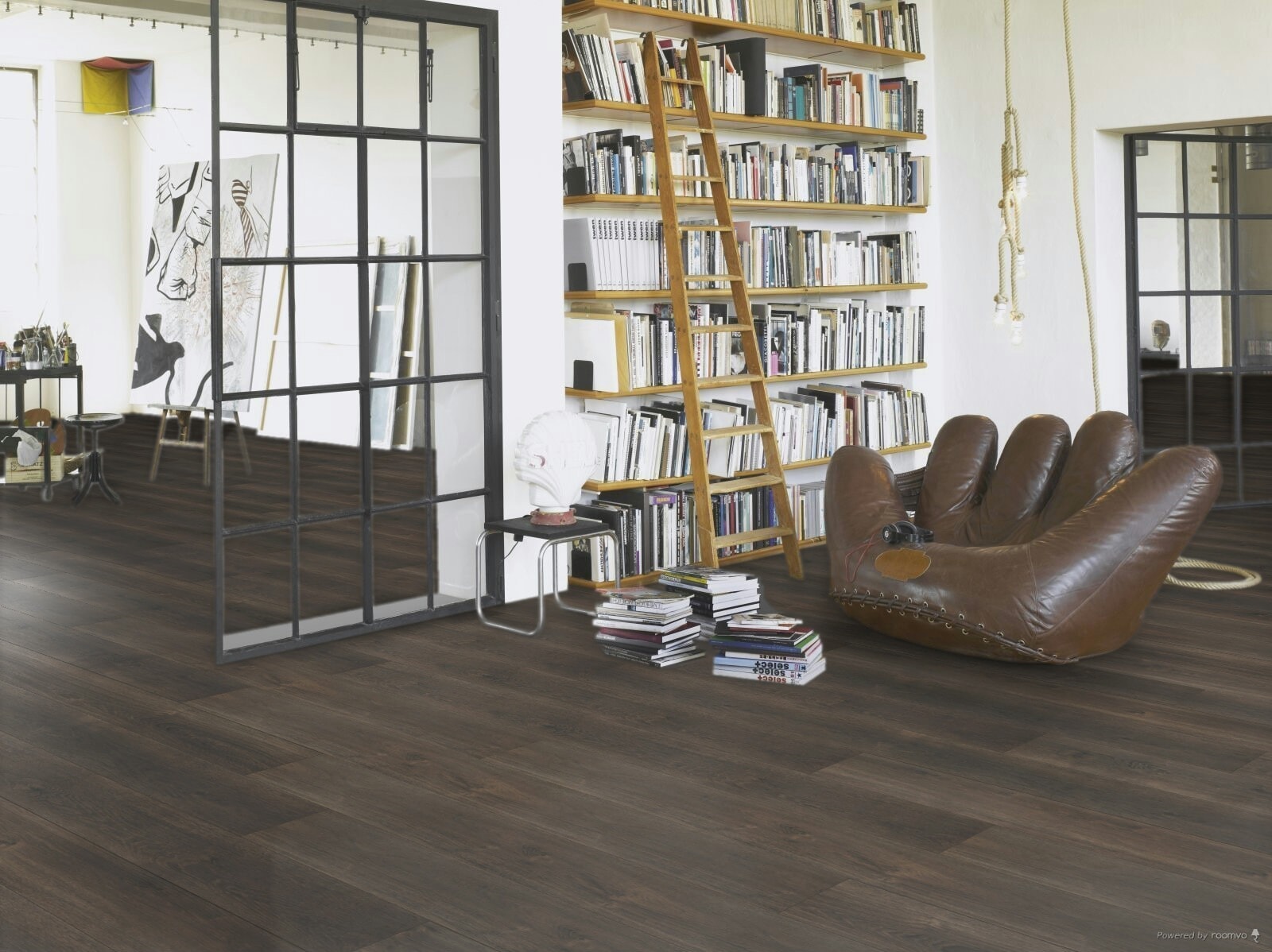 Et mørkt gulv “sluker” mye lys og kan få rommet til å virke mindre, men dette er ikke nødvendigvis negativt. Mørke gulv skaper en lun og hjemmetrivelig følelse. Dersom du har et rom med stor takhøyde og lyse vegger hvor mye naturlig lys slipper inn, vil det mørke laminatgulvet bidra til gi rommet en lunere og hjemmetrivelig følelse.