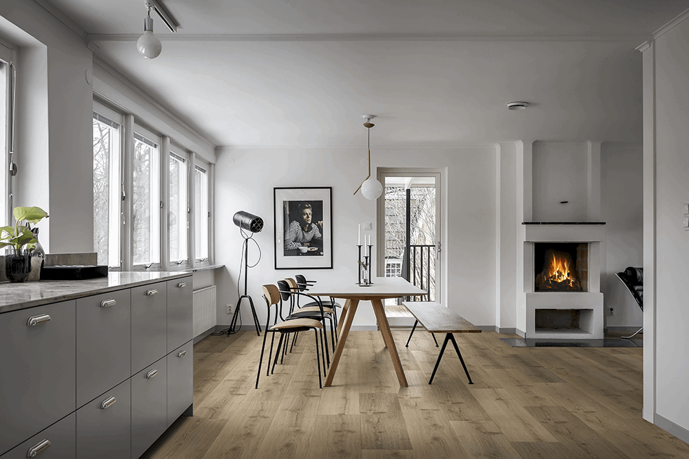 Har du barn som leker mye på gulvet, eller hund som løper rundt med klør, er klikkvinyl et svært slitesterkt alternativ. Overflaten tåler både riper og hard bruk langt bedre enn laminat, og du får et gulv som holder seg pent i mange år.