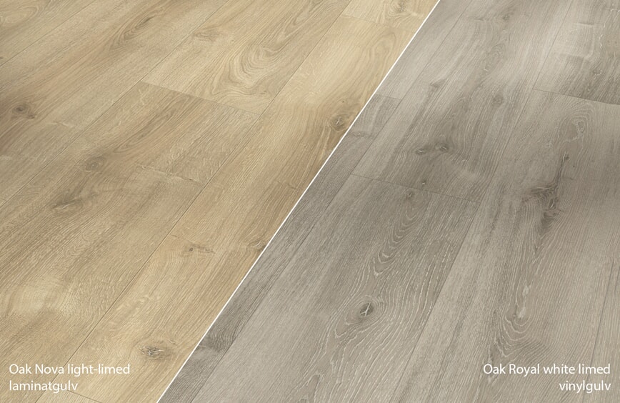 Både laminatgulv og vinylgulv har naturtro overflatetekstur som gir en naturlig treverk- eller steineffekt. Laminat- og vinylgulv har forskjellig oppbygning, men begge er ekstremt slitesterke.
