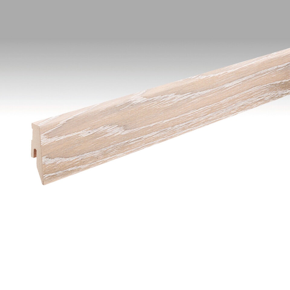 Gulvlist med MDF-kjerne er den perfekte måten å gi boligen et elegant og tidløst touch. Med sin varme naturlige farge og elegante konstruksjon, vil denne gulvlisten gi en varig estetisk forbedring til hvilket som helst rom. Gulvlisten har et foliert print på utsiden som etterligner gulvet det tilhører, Meister Lindura Natural Shell White Eik.