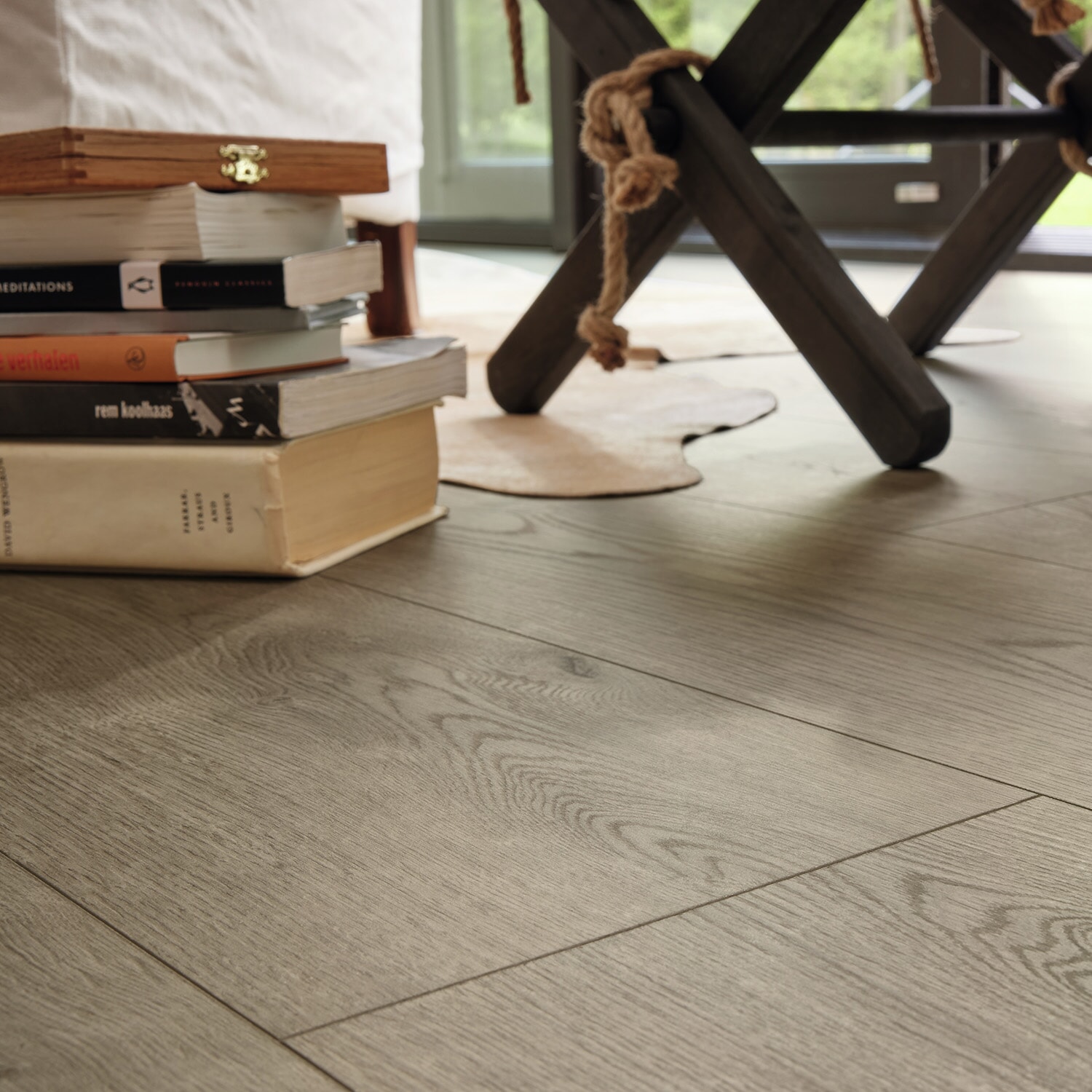 MeisterDesign. Comfort DL 600 S Grey Merino Oak er et kvalitetsgulv med naturtro tregjengivelse. Gulvet er enkelt å legge takket være mikrofuge på alle kanter og Masterclic Plus-klikksystem. Klikkvinylen har en 1 mm korkbelegg som reduserer trinnlydsstøy. For optimal støydemping av trinnlyd, anbefaler vi å legge trinnlydsduk under gulvbelegget.