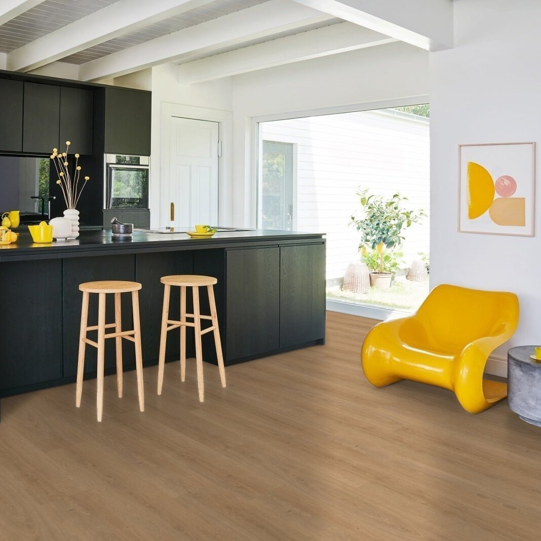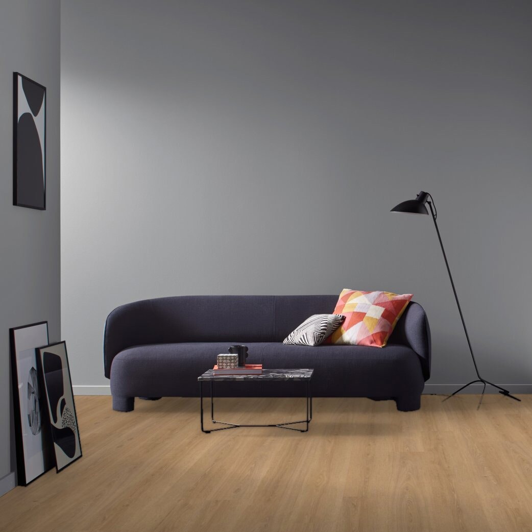 Klikkvinyl med HDF-kjerne består vanligvis av fiberplater med svært høy tetthet. Vinylbelegget er en naturtro etterligning av treverk, fliser eller naturstein, med en preget overflate. Gulvet er slitesterkt og enkelt å legge. Parador Classic 2030 Studioline Natural Wood passer meget godt i hjem der det er barn eller hund i hus.