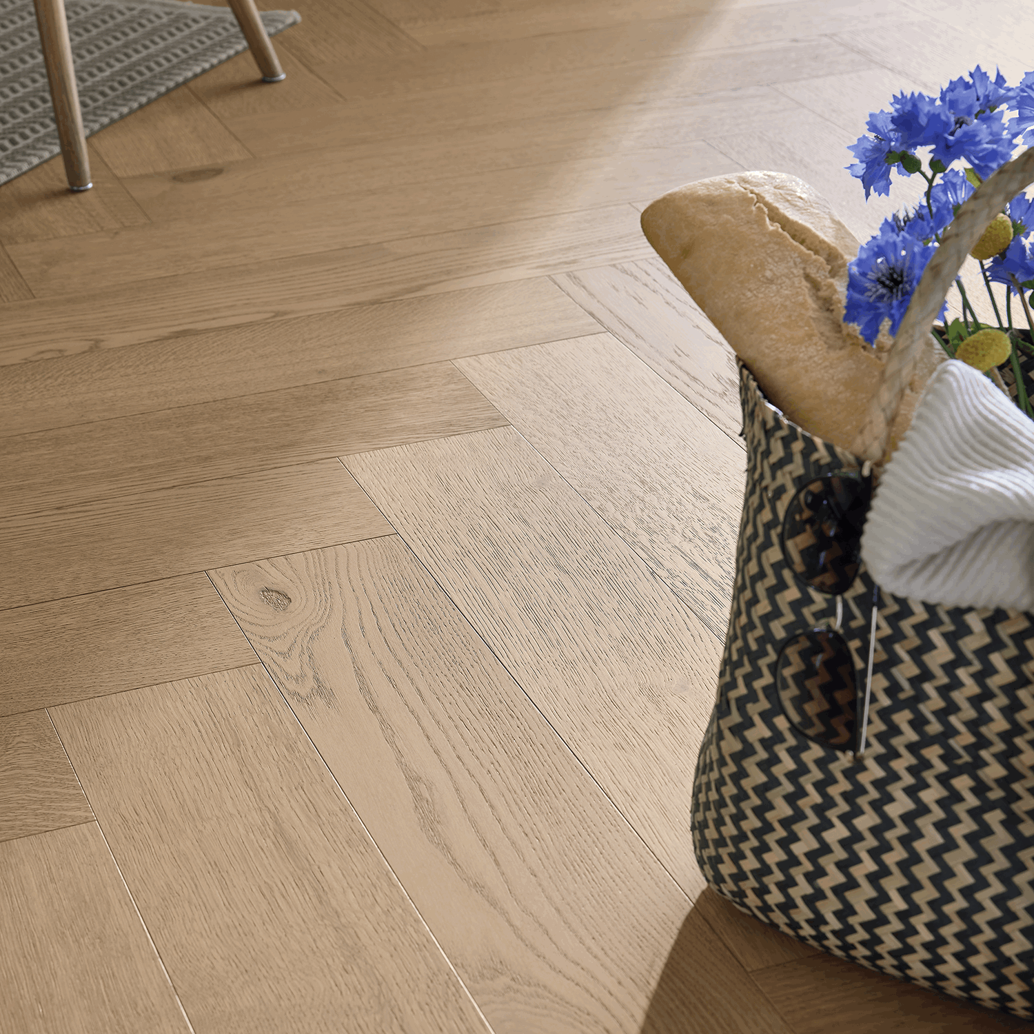 Meister Lindura HS 500 i Classic Oak Clay Brown er et slitesterkt tregulv som kombinerer ekte eik med moderne teknologi. Det klassiske fiskebensmønsteret gir et eksklusivt uttrykk, mens den naturlige sorteringen skaper en harmonisk balanse mellom rolige og mer livlige bord.