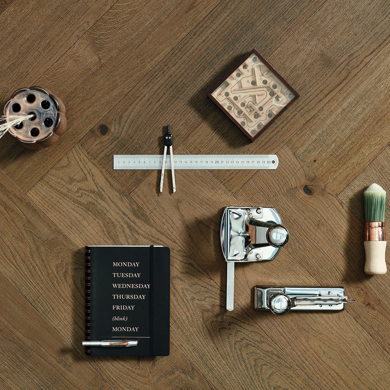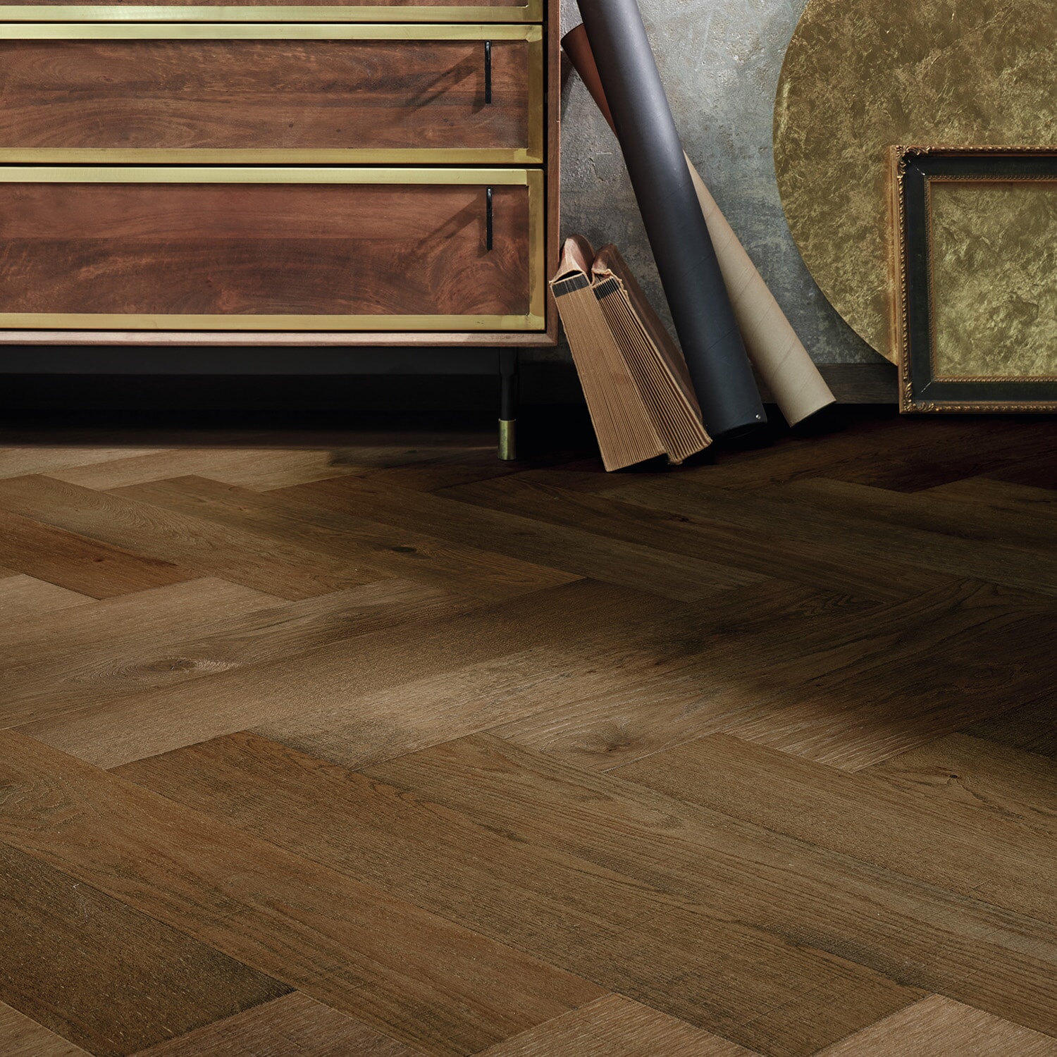 Meister HS500 Eik Olive Grey er et brunt og ultramattlakkert fiskebensgulv med et nydelige bruntoner, i et fargespill med kvist som gir et levende og sofistikert utseende. Dette brune fiskebensgulvet av eik, gir rommet dybde og intensitet. Mørke gulv gir ofte rommet en lun og hjemmetrivelig følelse.
