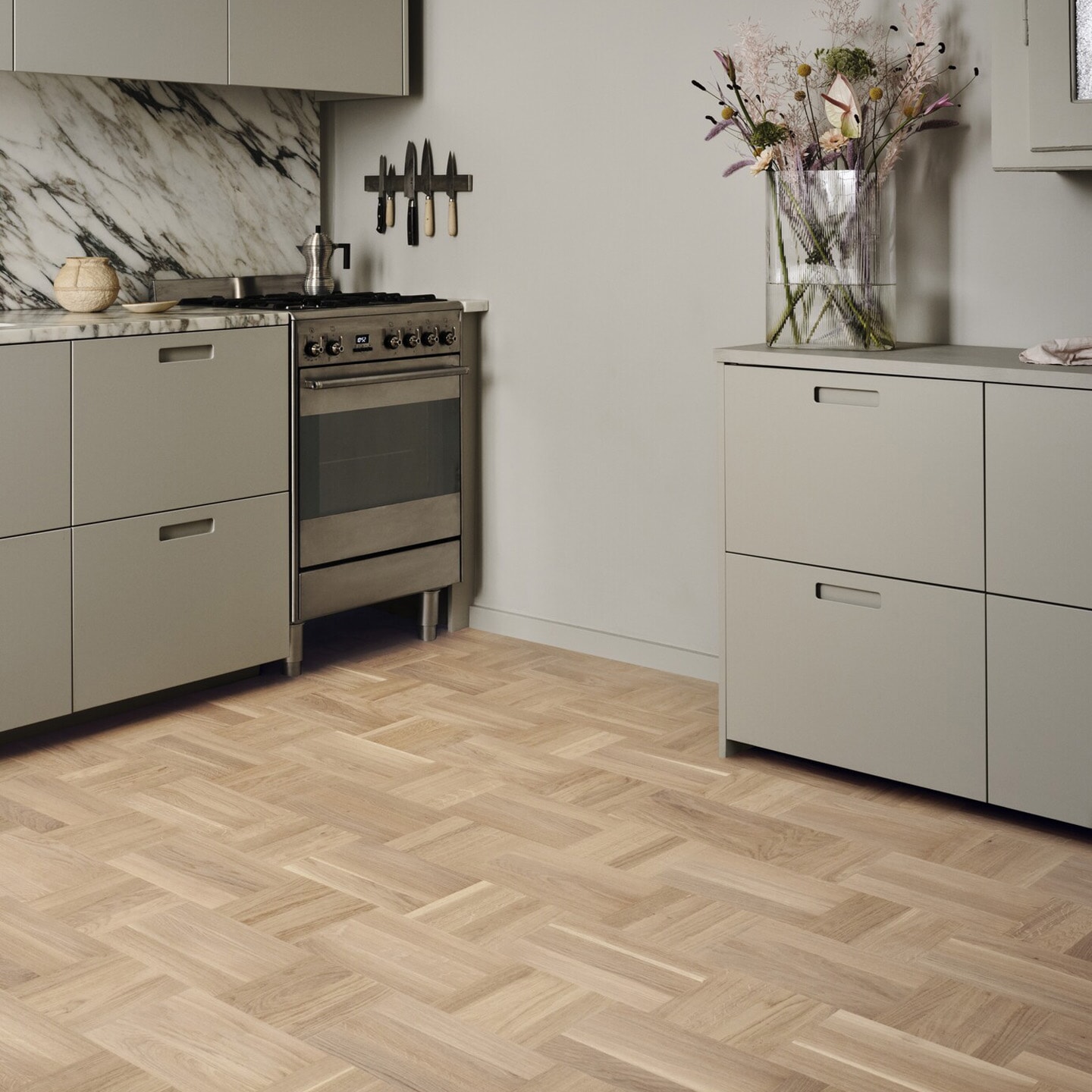 Dette er et gulv fra den nye kolleksjonen fra Tarkett, Grace. Svanemerket og ekstra mattlakkert parkett av eik.
