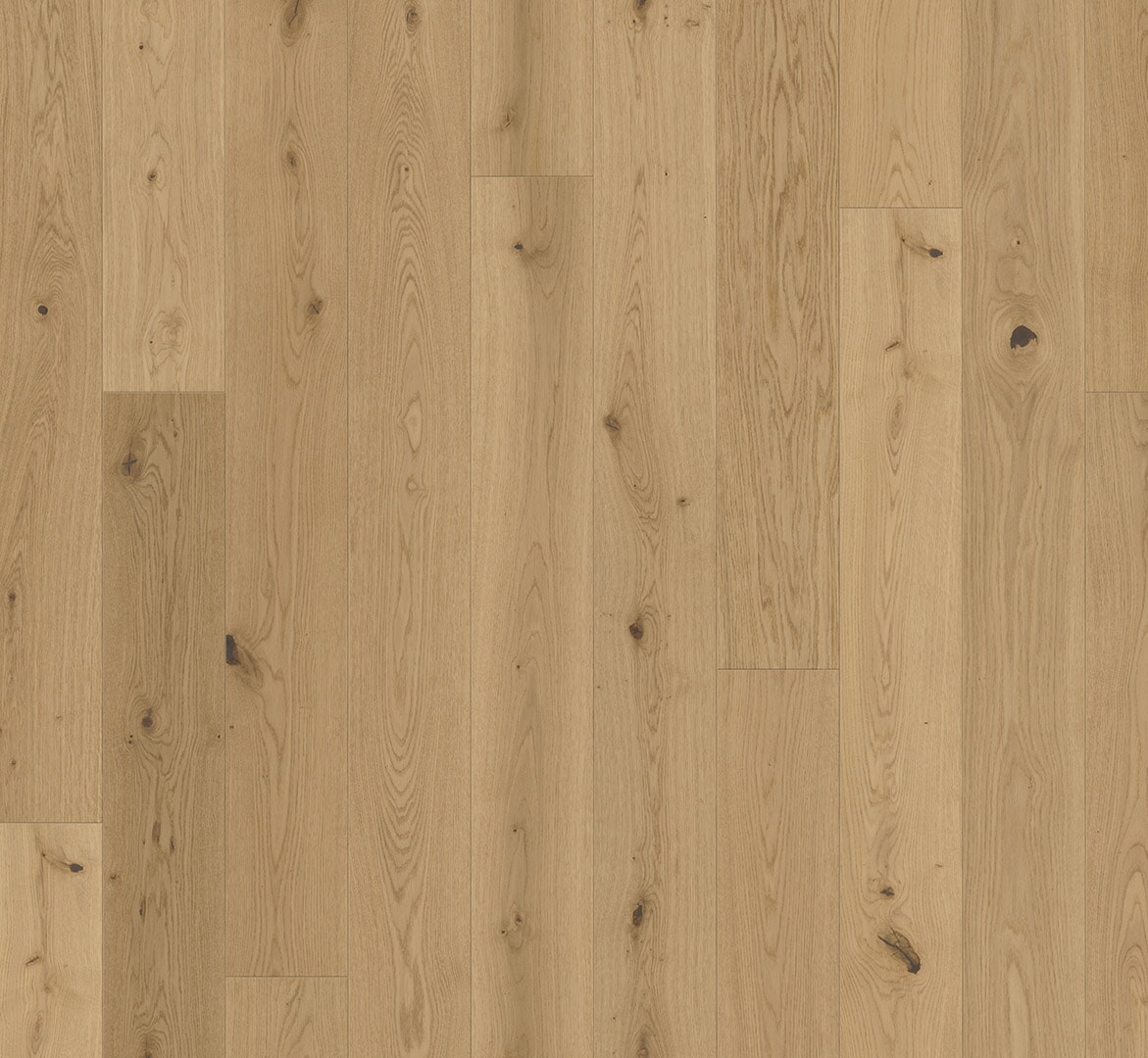 Den rustikke sorteringen gir et naturlig og autentisk uttrykk takket være kvistene, det markerte fargespillet og den tydelige trestrukturen. En diskret mikrofas rundt hver planke bryter overflaten på en elegant måte og fremhever parkettens naturlige karakter.