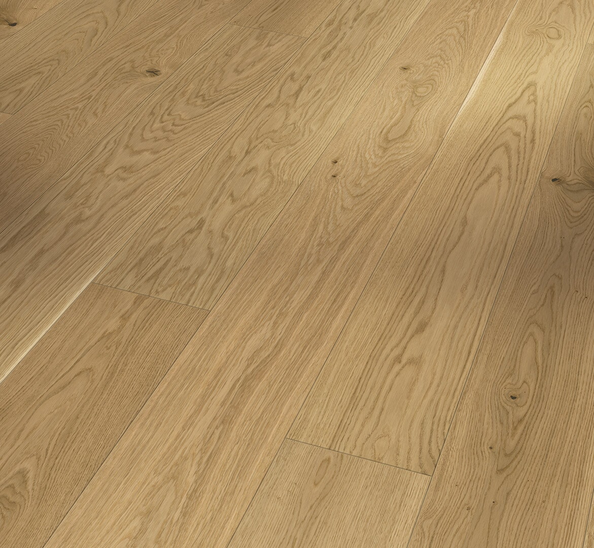 Parador parkettgulv i eik Molvina natur fra Trendtime 4-serien gir deg muligheten til å innrede hjemmet stilbevisst og på et høyt estetisk nivå. Det naturlige designet og den matt lakkforseglede overflaten på plankene i formatet 2010 x 160 x 13 mm gjør dette gulvet til en allsidig løsning for unik og personlig romdesign.