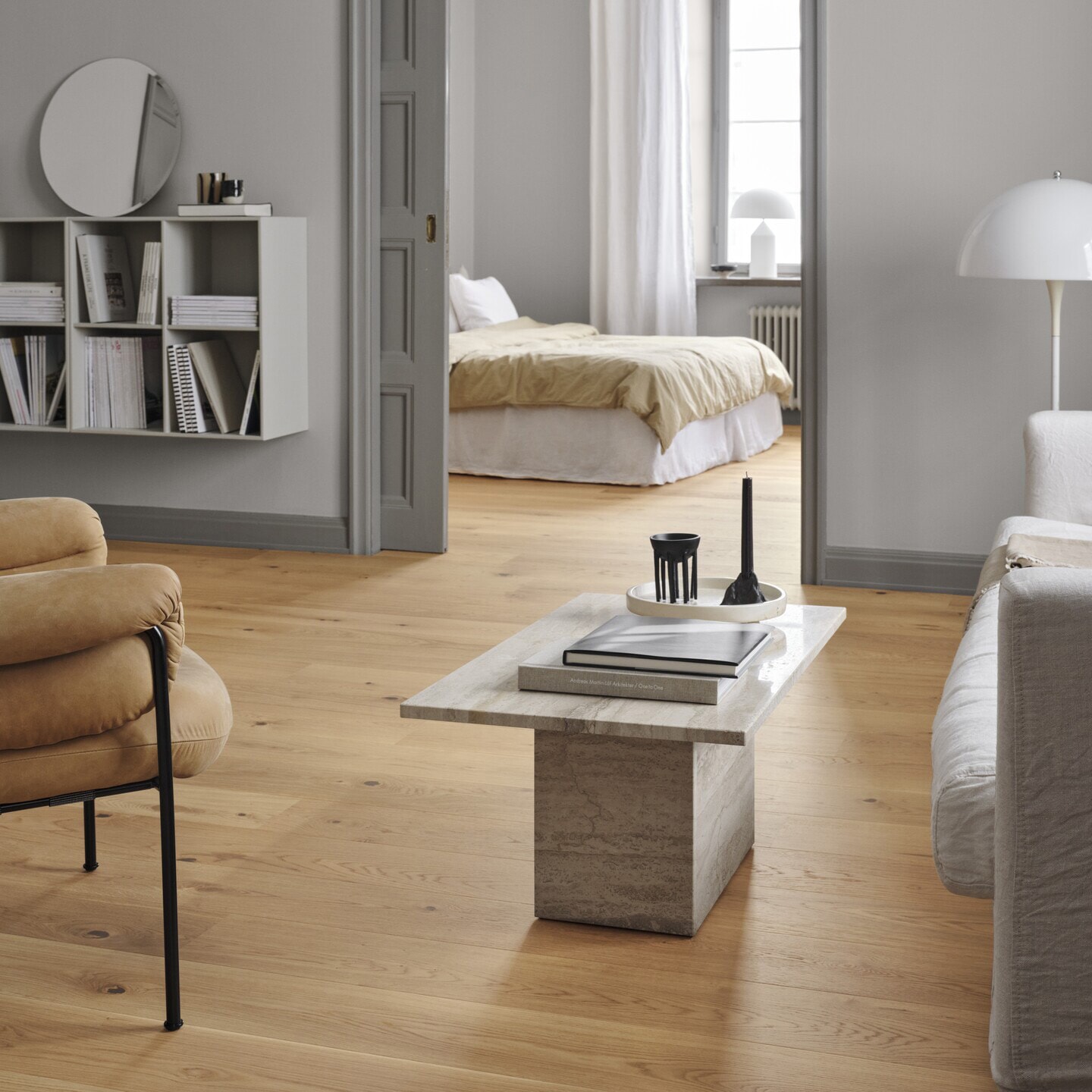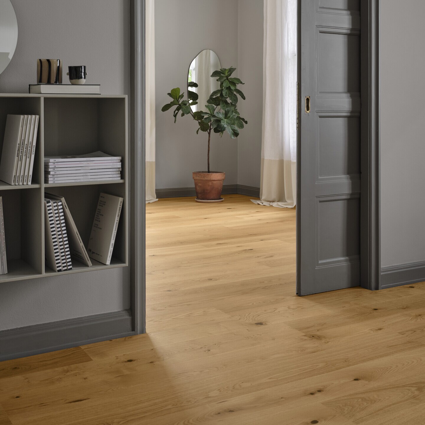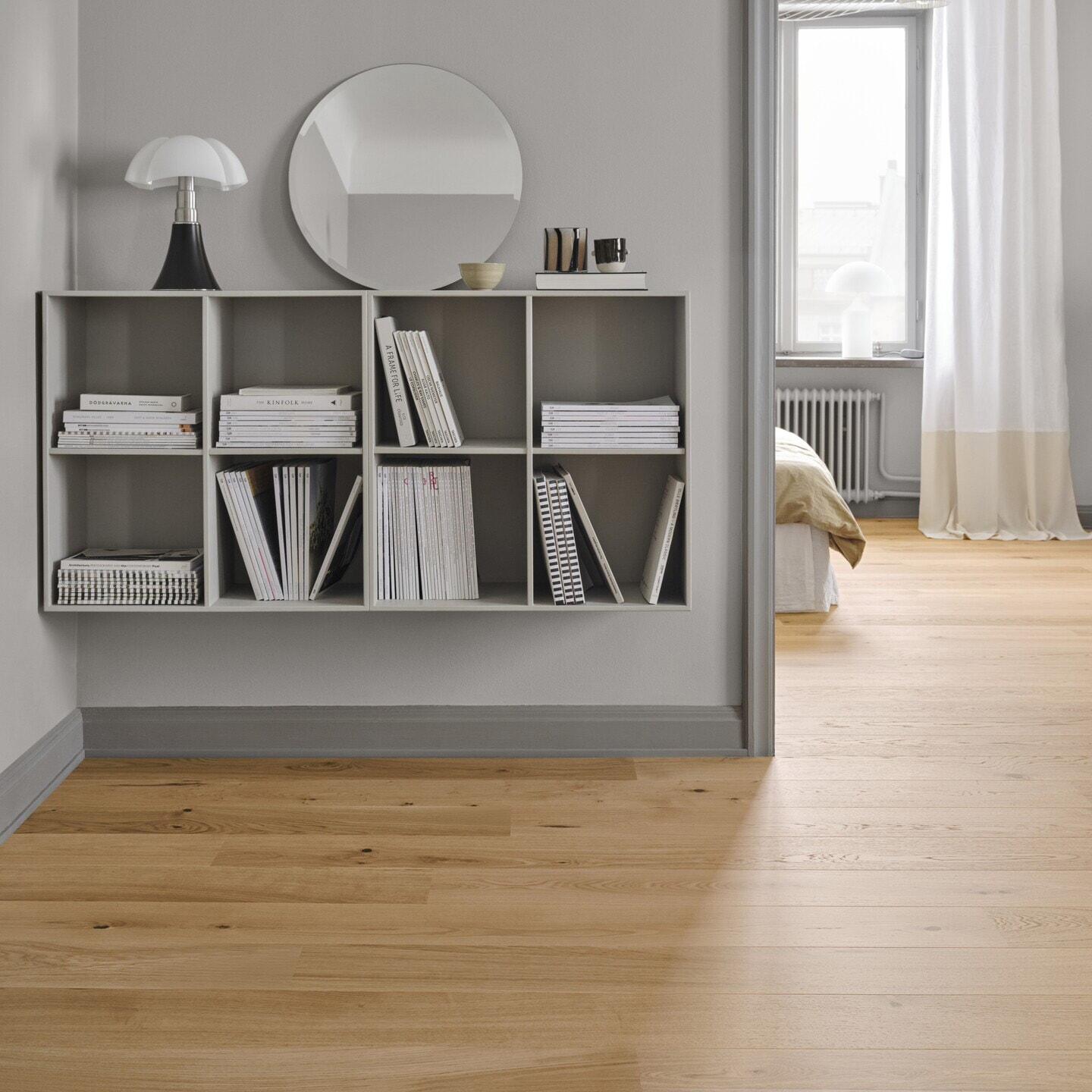 Mattlakkert parkettgulv med unik lakk som kombinerer det naturlige uttrykket til et oljet tregulv med det enkle vedlikeholdet av et lakkert gulv. Med den nye lakken Proteco ExtraMatt får du alle de praktiske fordelene ved det lakkerte gulvet. Enkelt å rengjøre, minimalt vedlikehold og effektiv beskyttelse mot daglig slitasje og flekker. Kolleksjonen er Svanemerket.