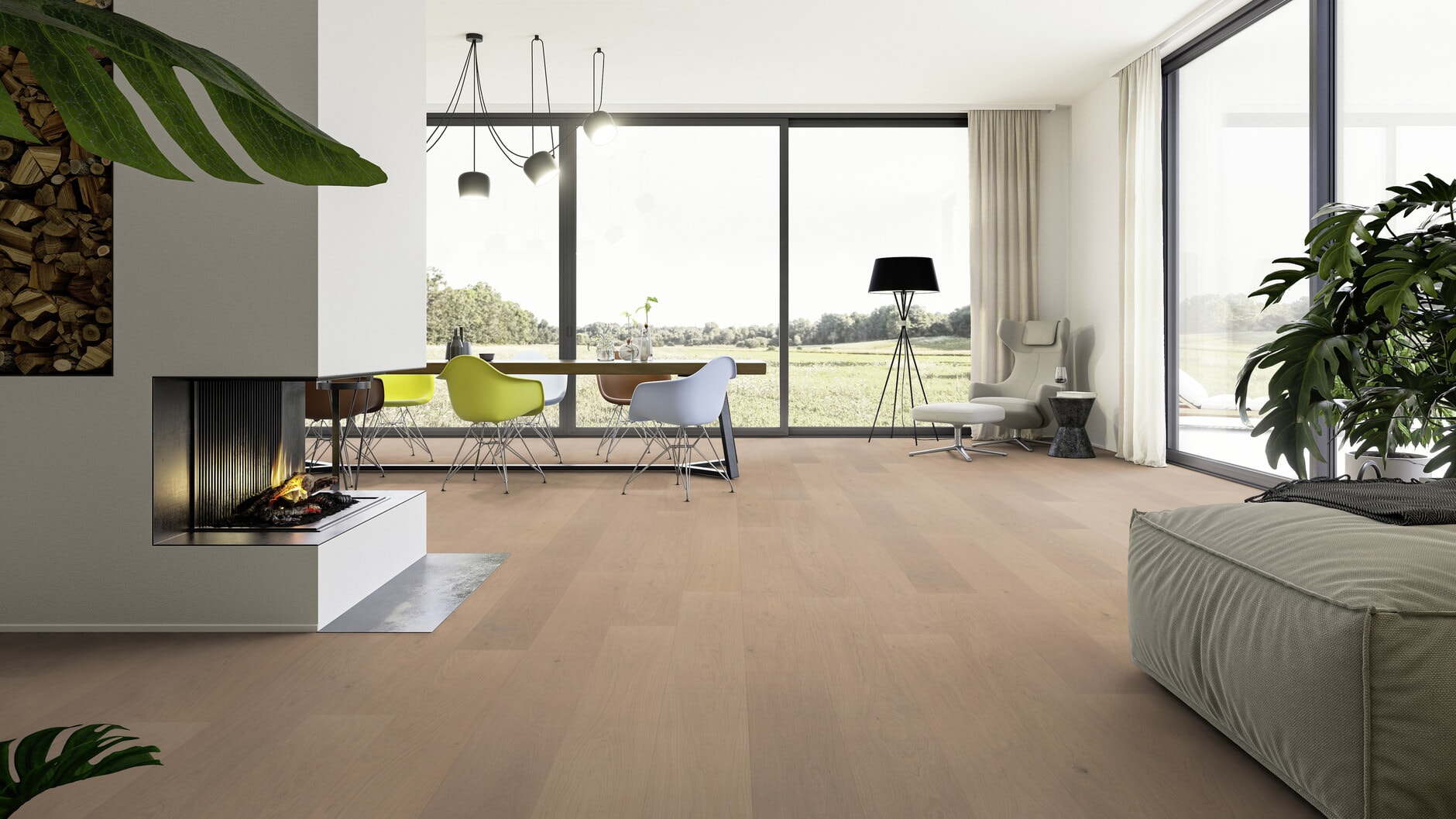 Ter Hurne Eik Hywood Evo Junkerdal er et børstet ekstramattlakkert herdet tregulv med et lyst og rent fargespill helt uten kvist som gir et moderne og stille utseende. Gulvet er hvitpigmentert og gjør at gulvet passer inn i alt fra gammeldagse til nymotens hjem. Dette lyse tregulvet skaper en god atmosfære i rommet.