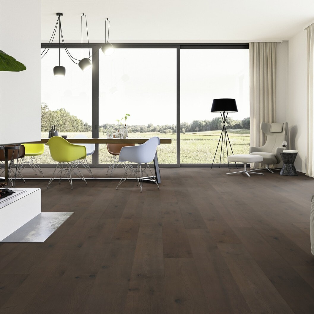 Ter Hürne Eik Hywood Sumava er et elegant, børstet og ekstramatt lakkert herdet tregulv med en dyp, varm brun tone og et naturlig spill i treverket. Kvistene og strukturen fremhever gulvets autentiske karakter og gir et tidløst, europeisk uttrykk. Den slitesterke lakken beskytter overflaten og reduserer behovet for vedlikehold sammenlignet med oljede gulv. Sumava passer perfekt i både moderne og klassiske interiører, og tilfører rommet en lun og eksklusiv atmosfære.