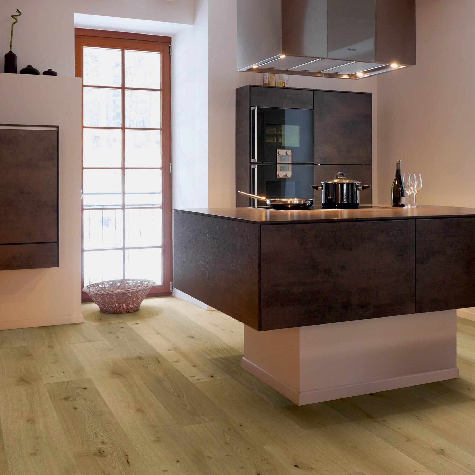 Disse slottplankene gir et betydelig mer livlig gulvuttrykk med sin rustikke sortering, oppkalt etter bostedet til Lady Di, Kensington Palace. Kvistene er diskret kamuflert med trefarget fyll. Også disse slottplankene får en skånsom børsting og blir til slutt foredlet med naturlig olje som en kronende finish.