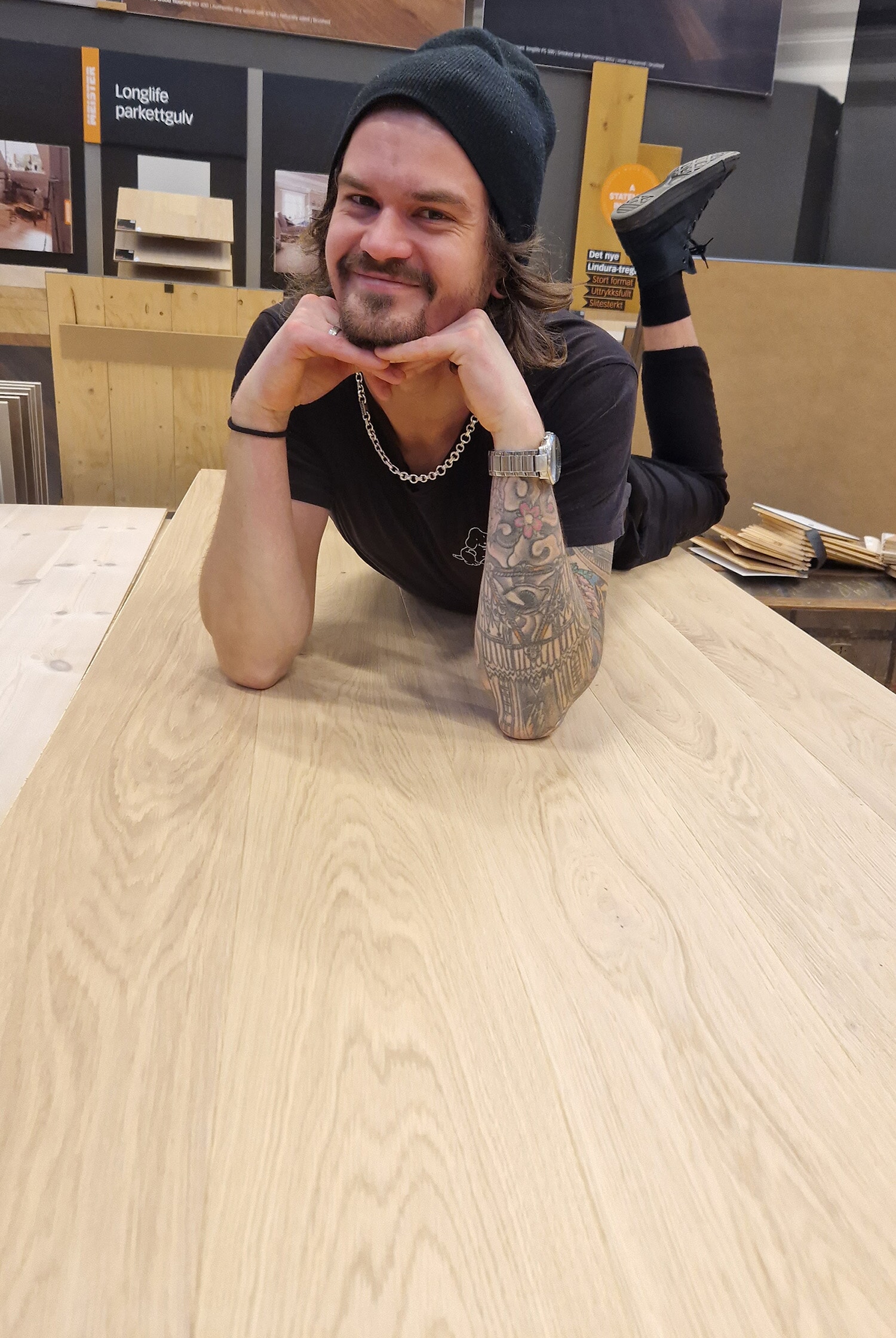 Vi har gulvet utstilit i vår butikk. Ta turen innom og sjekk ut gulvet.