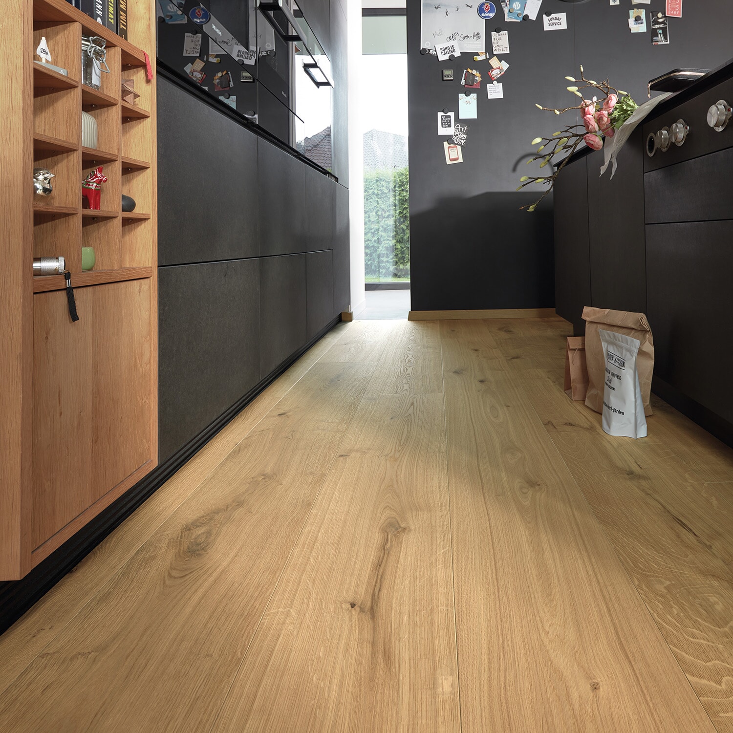 Med sine brede planker er dette tregulvet fra Lindura-serien til Meister, spesielt godt egnet til store rom. Plankenes spesielle produktstruktur gjør Lindura-gulv ekstremt slitesterkt og er dermed den ideelle gulvløsningen for oppholdsrom med mye trafikk. Tregulvet kan til og med benyttes i visse komersielle rom. De naturoljede plankene gir gulvet en unik naturkvalitet, og skaper en spesiell atmosfære i ethvert rom.