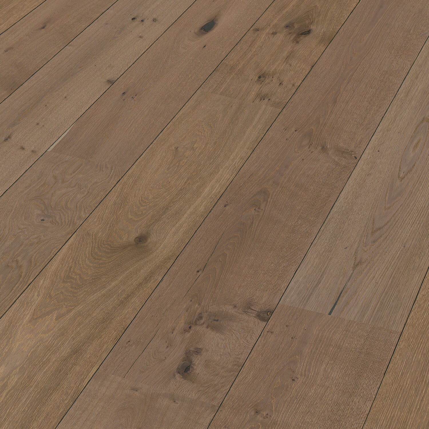 Dette er et gråbrunt tregulv som skaper dybde og intensitet i interiøret. Gulvet kan oppfattes som elegant og gir en lun og hjemmetrivelig følelse. Gulvet tilpasser seg lett til andre farger og kan virke kald eller varm avhengig av fargene rundt seg i rommet.