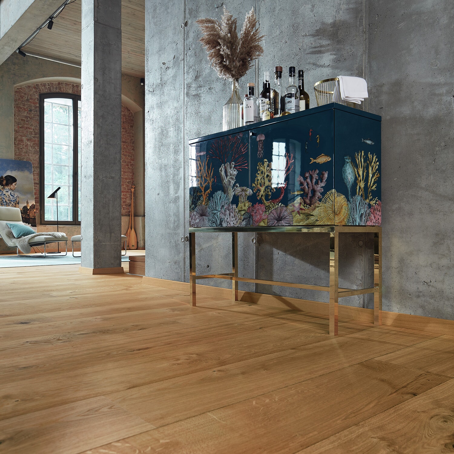 Med sine brede planker er dette ultramattlakkerte tregulvet fra Lindura-serien til Meister, spesielt godt egnet til store rom. Plankenes spesielle produktstruktur gjør Lindura-gulv ekstremt slitesterkt og er dermed den ideelle gulvløsningen for oppholdsrom med mye trafikk. Tregulvet kan til og med benyttes i visse komersielle rom. De naturoljede plankene gir gulvet en unik naturkvalitet, og skaper en spesiell atmosfære i ethvert rom.