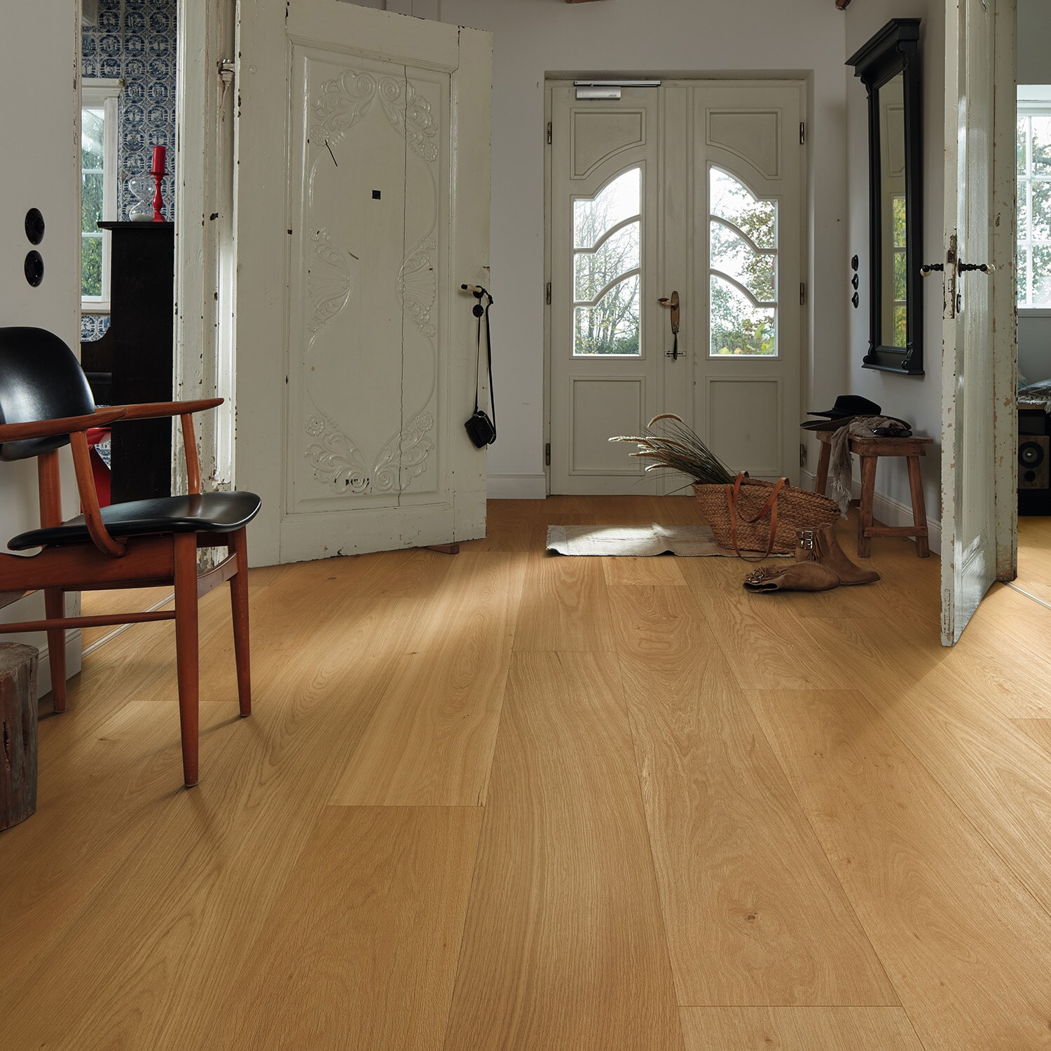 Med sine brede planker er dette herdede tregulvet fra Lindura-serien til Meister, spesielt godt egnet til store rom. Plankenes spesielle produktstruktur gjør Lindura-gulv ekstremt slitesterkt og er dermed den ideelle gulvløsningen for oppholdsrom med mye trafikk. Tregulvet kan til og med benyttes i visse komersielle rom. De naturoljede plankene gir gulvet en unik naturkvalitet, og skaper en spesiell atmosfære i ethvert rom.