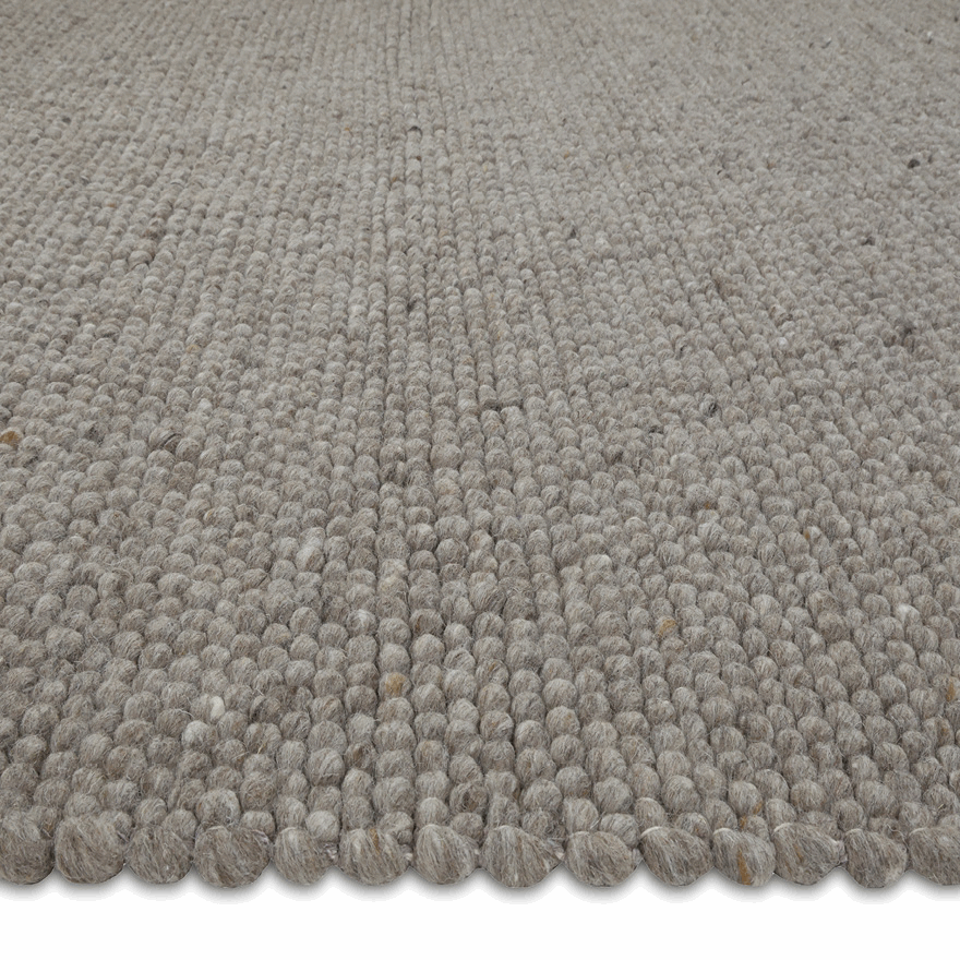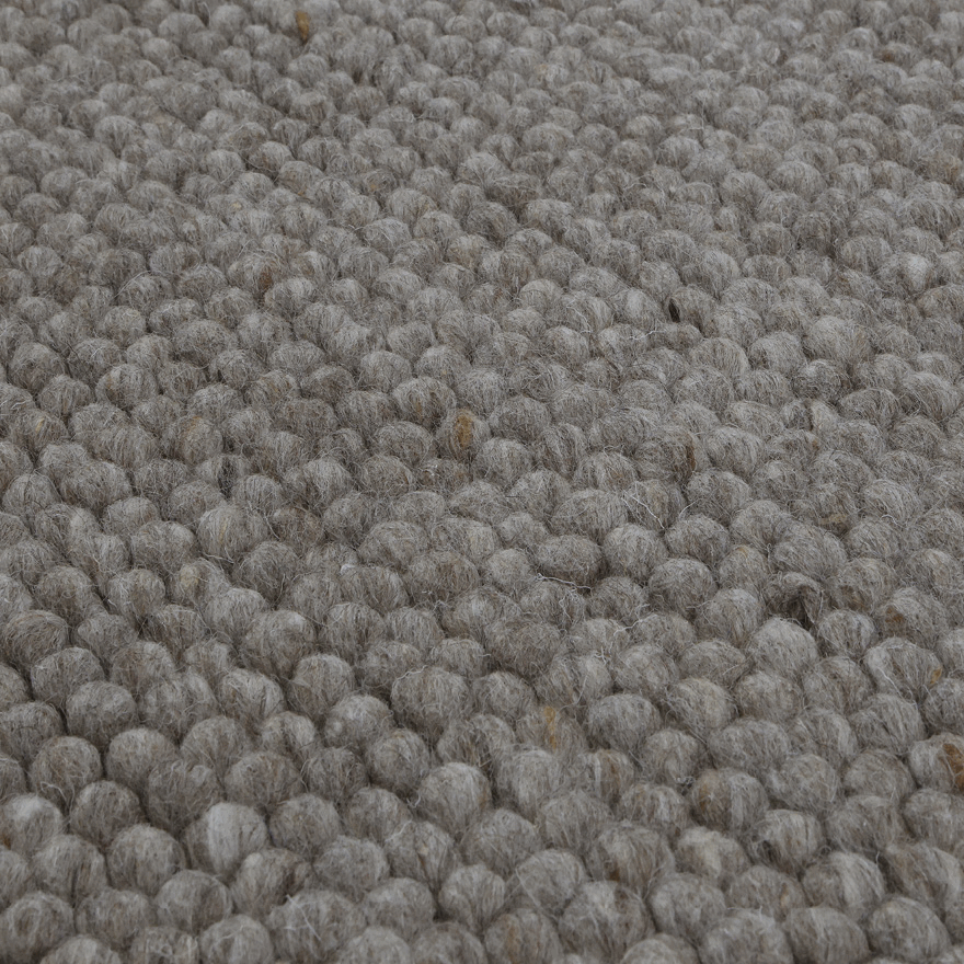 Overflaten har en melert tekstur som spiller på lys og skygge, noe som gir et levende, men rolig uttrykk. Ullens naturlige varme og isolasjonsevne gjør at teppet føles behagelig under føttene, samtidig som det bidrar til et godt innemiljø. I tillegg demper ull lyder og fremstår som et luksuriøst element i rommet.