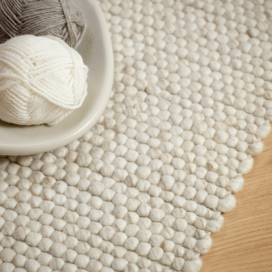 Ullmaterialet bidrar til at teppet føles mykt og lunt mot gulvet, samtidig som det isolerer lyd og hjelper til med å balansere inneklimaet. Det melerte uttrykket gjør at teppet fungerer som en dempet bakgrunn som løfter frem møbler og tekstiler uten å konkurrere om oppmerksomheten.