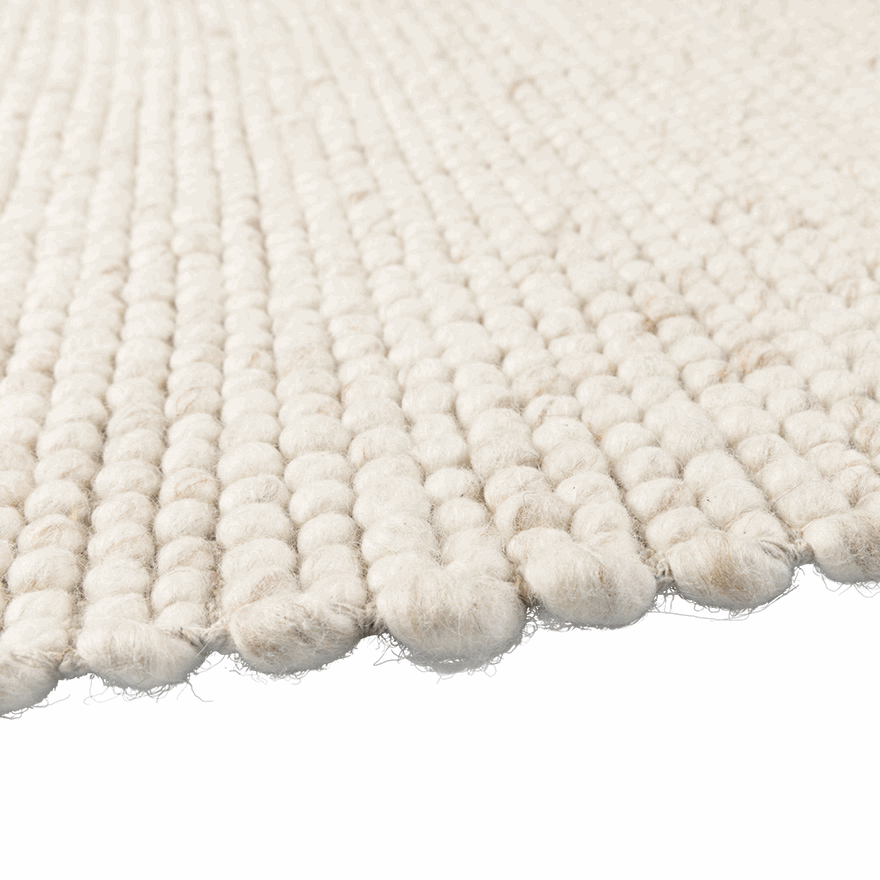 Sjoa Travertin er håndvevd med 100 % ull i overflaten og har bomullsrenning for ekstra stabilitet.