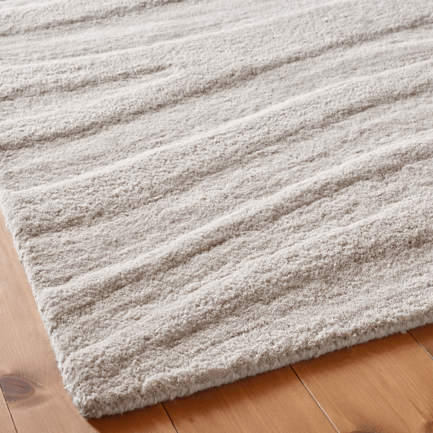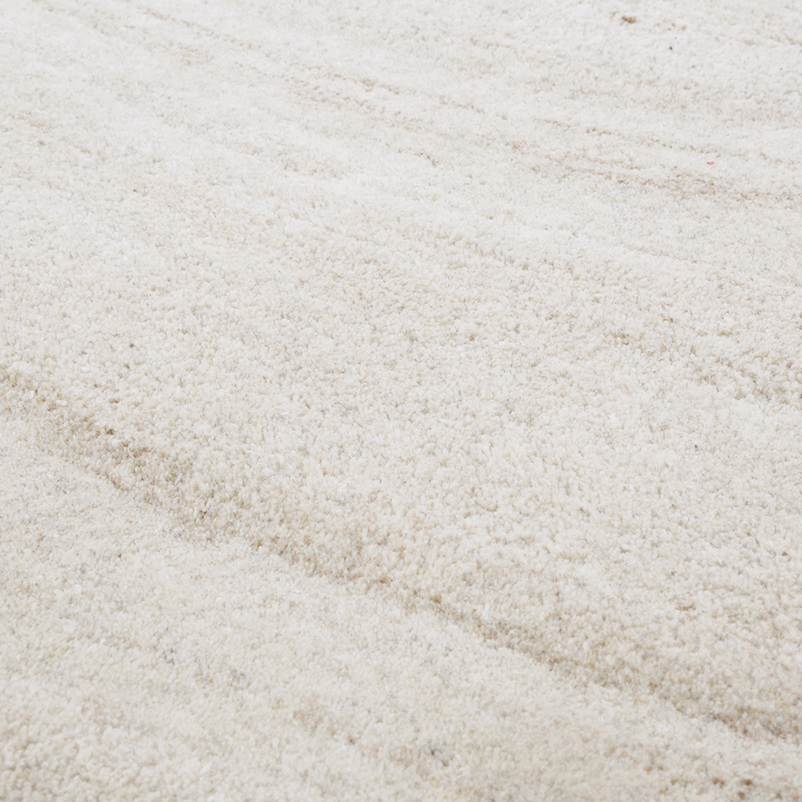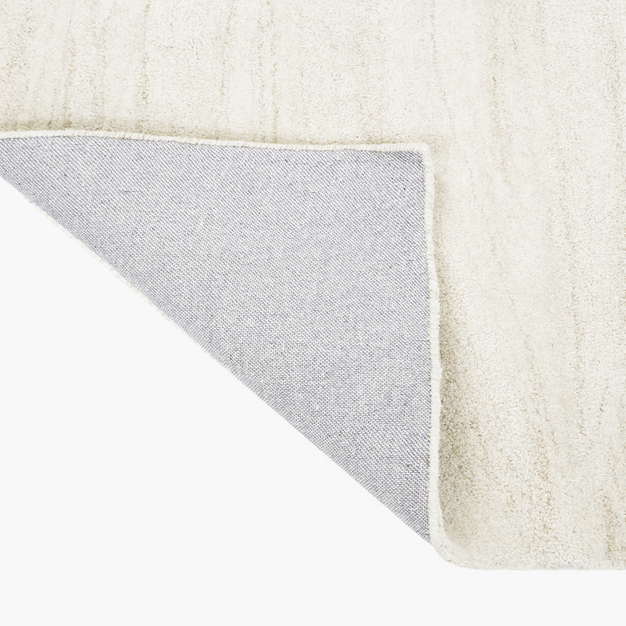 Surin er håndtuftet i 100% ull, og har en bakside av resirkulert bomull for stabilitet og komfort. Overflaten er håndskåret med mønster inspirert av myke sanddyner, dette skaper et organisk og levende uttrykk som fanger lys og skygge på en delikat måte. Teppet kombinerer slitestyrke og luksusfølelse: ullens naturlige egenskaper gir god isolasjon, demper lyd og regulerer fuktighet.