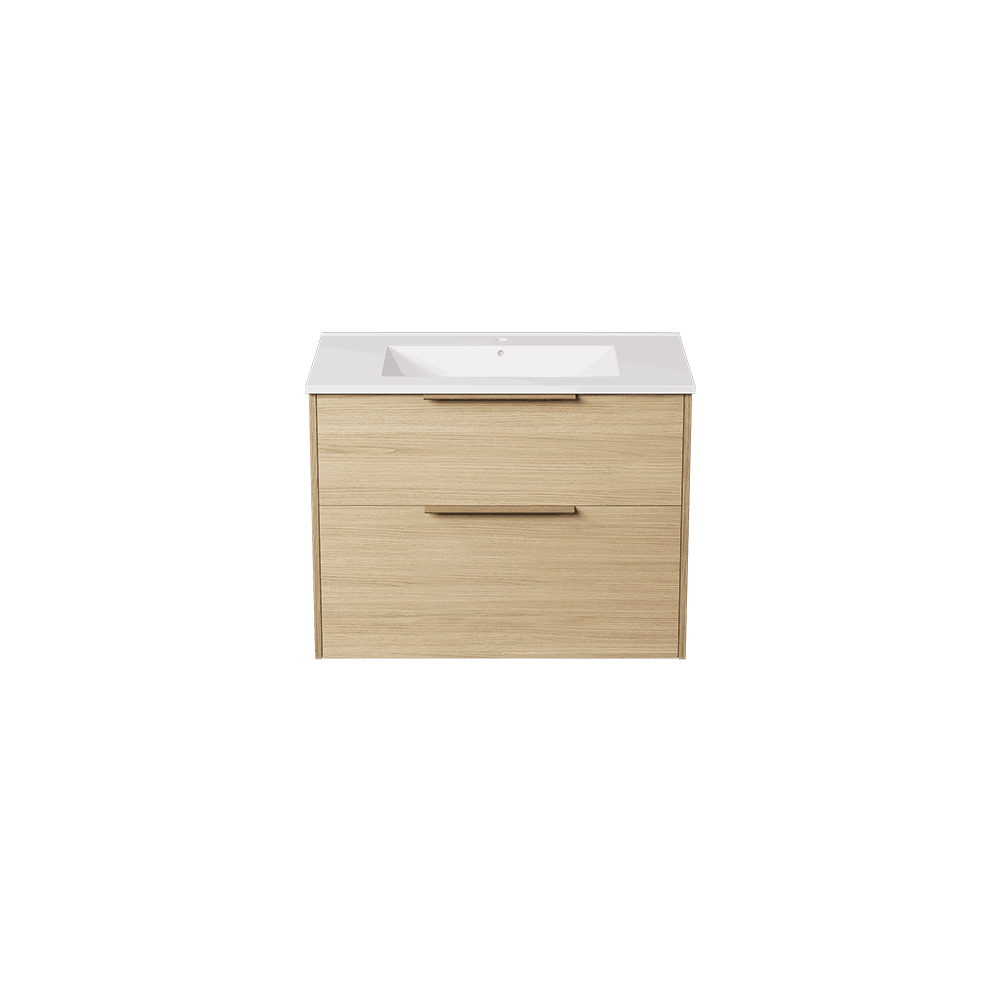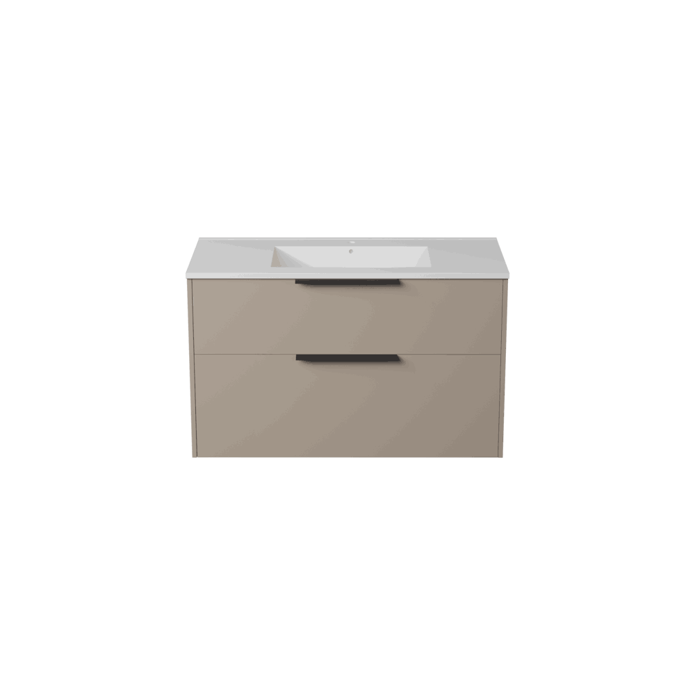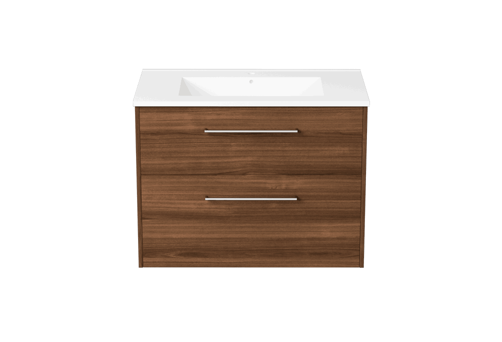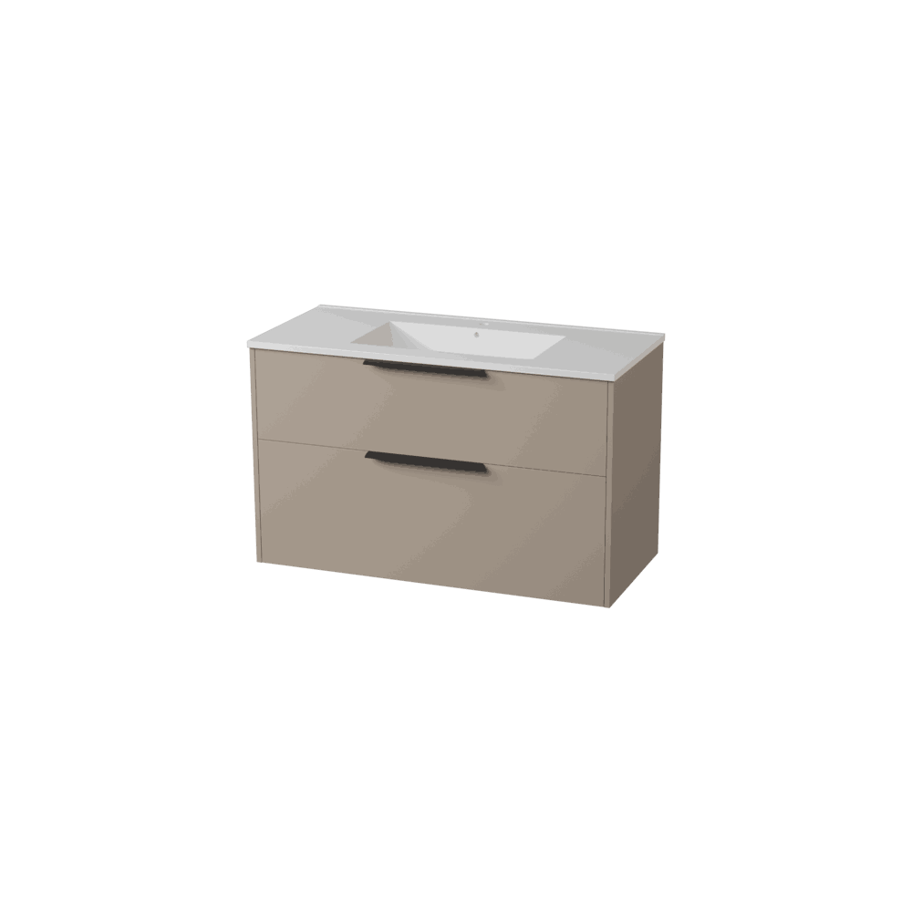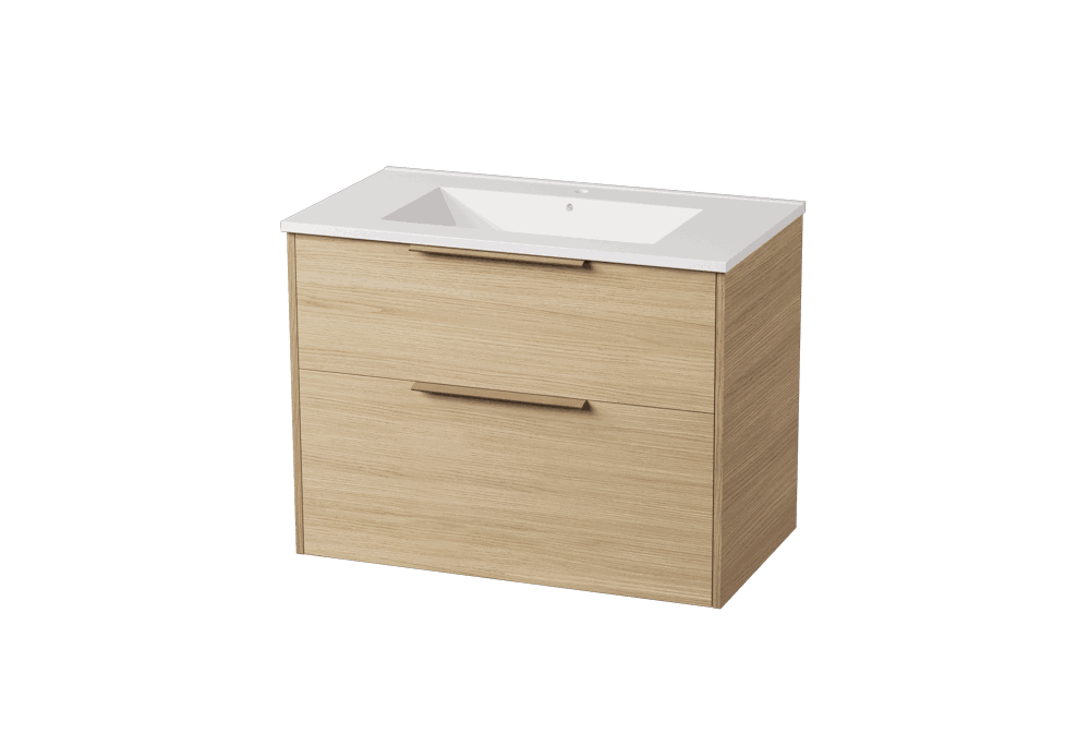 Servantskapet leveres med frontene ferdig montert og inneholder to myktlukkende skuffer med glass i sidene.